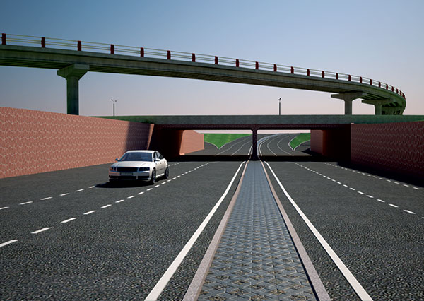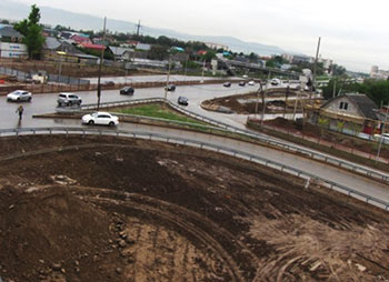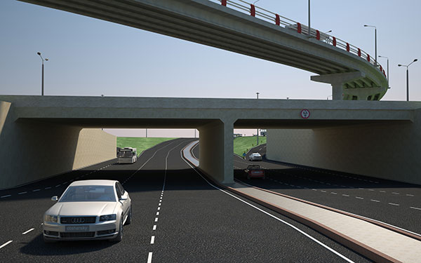 Проектом предусматривается строительство путепровода по ул. Саина и прямого левого поворота на эстакаде.